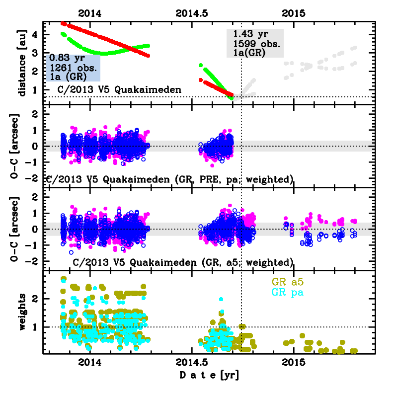 data arc selection | data generally limited to pre-perihelion (PRE) | |
