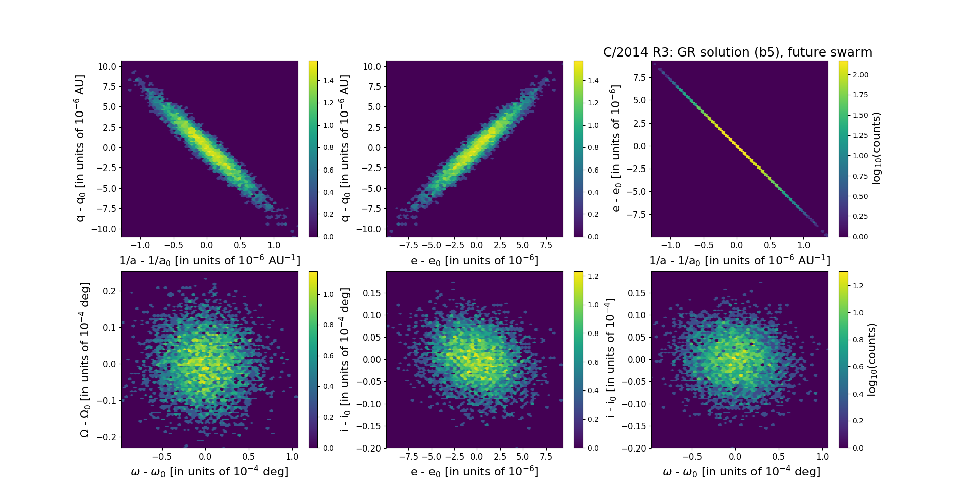 This marginally Oort spike comet suffers slight planetary perturbations during its passage through the planetary system; these perturbations lead to a more tight future orbit (see future barycentric orbits).