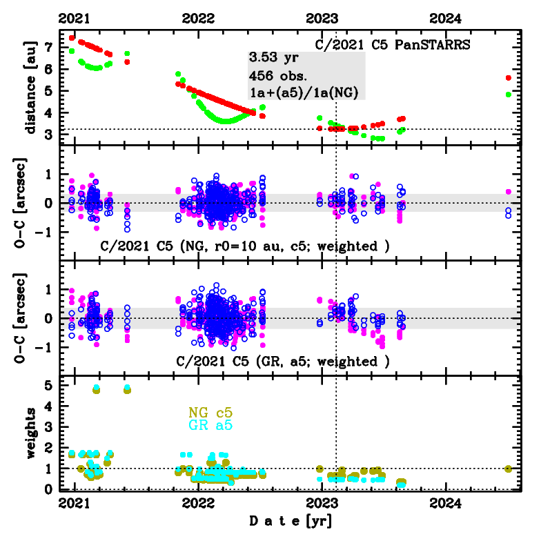 The preferred NG solution given here ('c5') is based on data span over 3.53 yr in a range of heliocentric distances: 7.43 au – 3.24 au (perihelion) – 5.60 au.