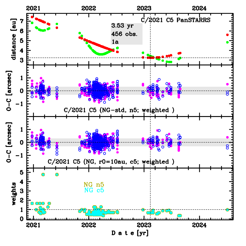 The preferred NG solution given here ('c5') is based on data span over 3.53 yr in a range of heliocentric distances: 7.43 au – 3.24 au (perihelion) – 5.60 au.