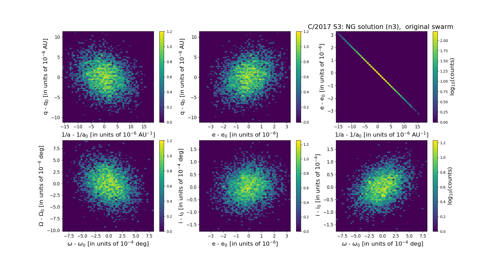 According to both solutions based on this shorter data arc ('a3' and 'n3'), C/2017 S3 was an Oort spike comet with original semimajor axis of about 44,700–108,000 au (uncertainty of one sigma is applied).