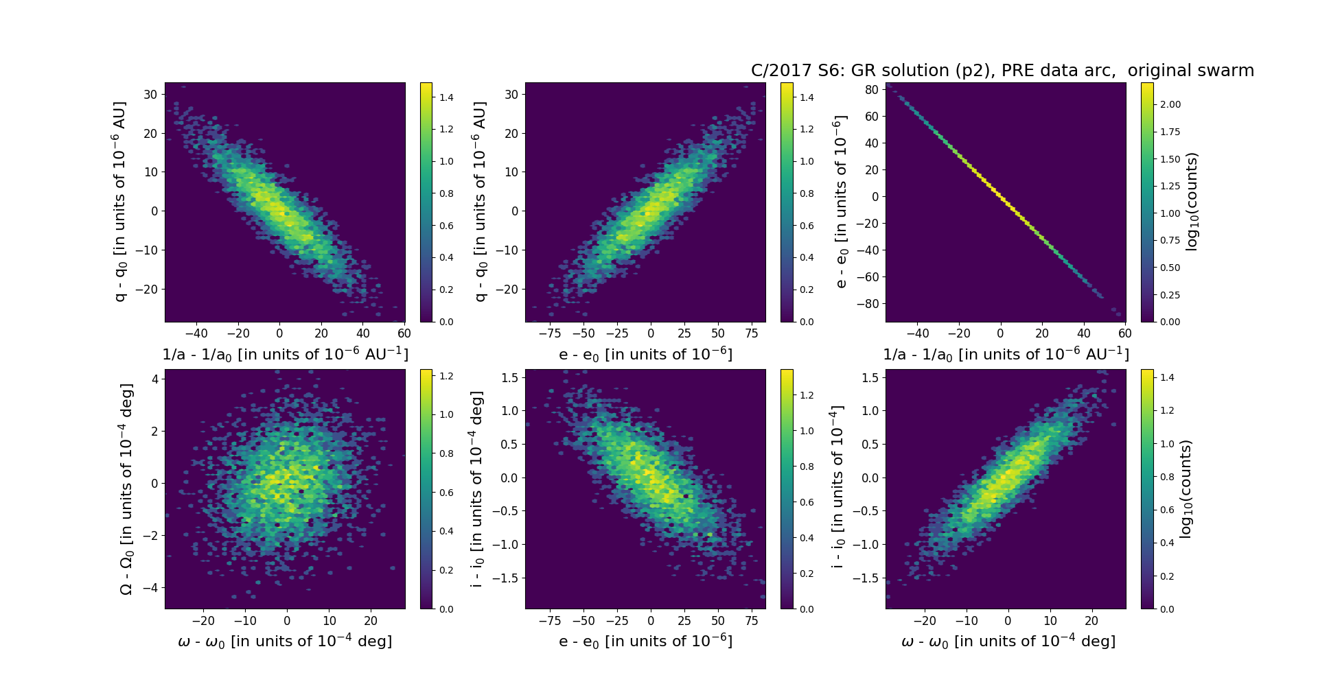 Only GR orbit is possible to obtain. GR solution 'a5' is based on data spanning over 0.934 yr in a range of heliocentric distances from 4.67 au to 1.61 au along pre-peperihelion orbital leg whereas 'p2' is based on shorter data arc spanning over 0.79 yr to a heliocentric distance of 1.95 au.