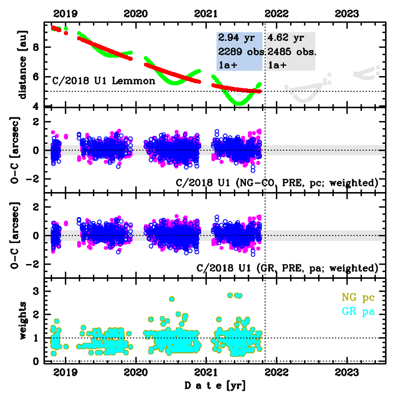 Comet C/2018 U1 was discovered on 27 October 2019, almost four years before its perihelion passage, and was observed until the mid-2023 (as in February 2025).